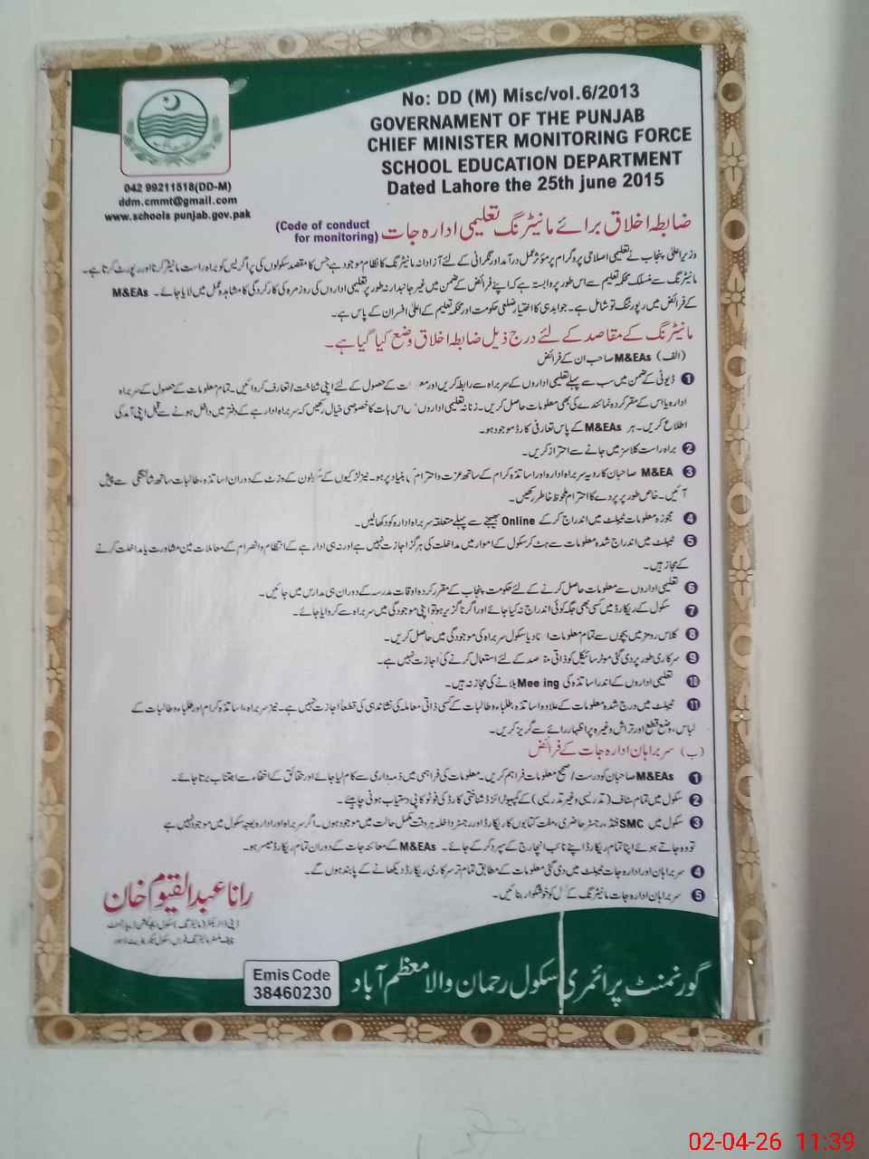 | EMIS Code: 38460230 | Name of School: GPS DERA REHMAN WALA | |||