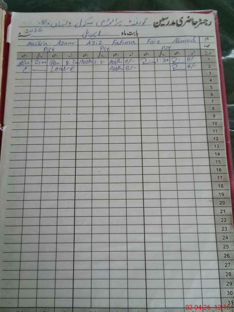 | 38**** | Bu**** Az**** | PST Science/Maths | Regular | 0 | 0 | 0 | 0 | 0 | 0 | 0 | 0 | 0 | Casual |