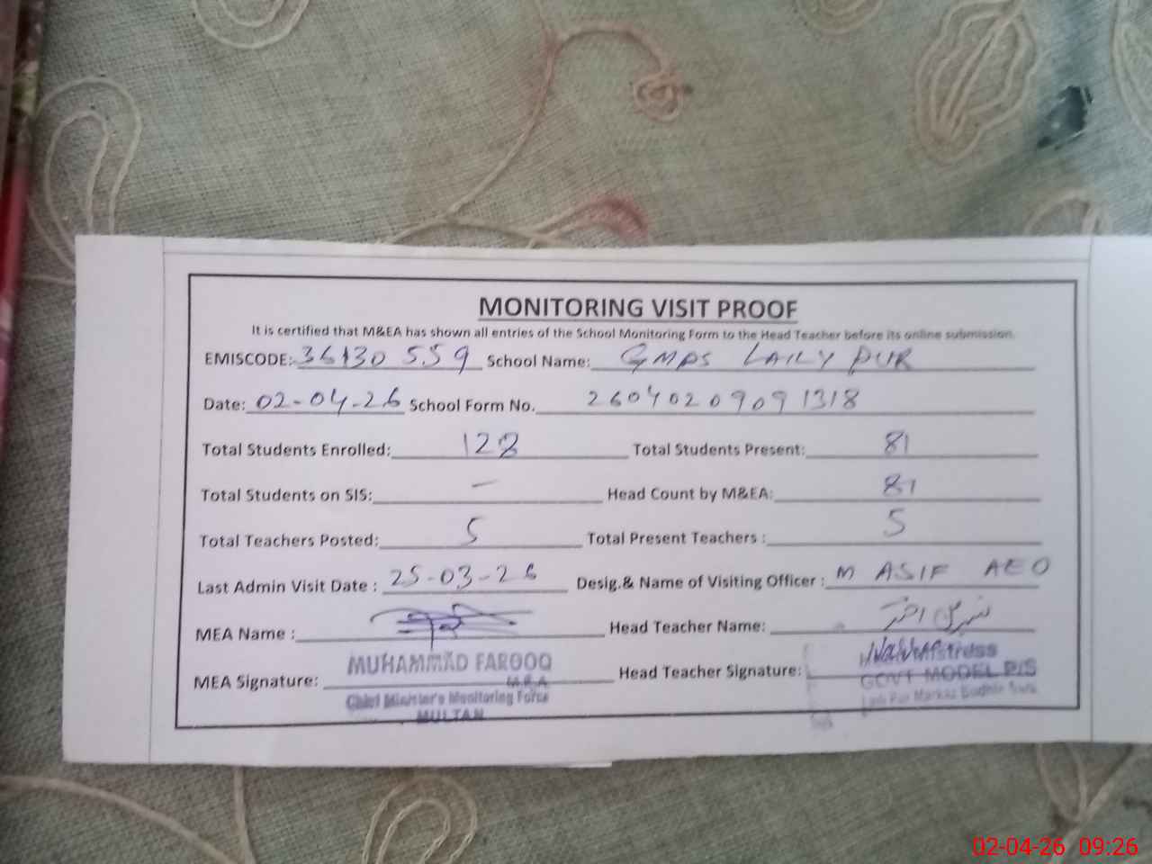 | EMIS Code: 36130559 | Name of School: GMPS LAILY PUR | |||
