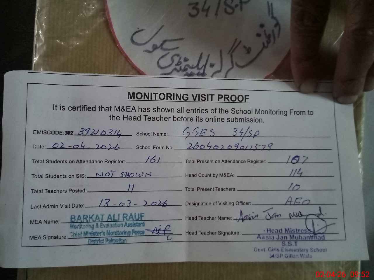 | EMIS Code: 39210314 | Name of School: GGES 34 SP | |||