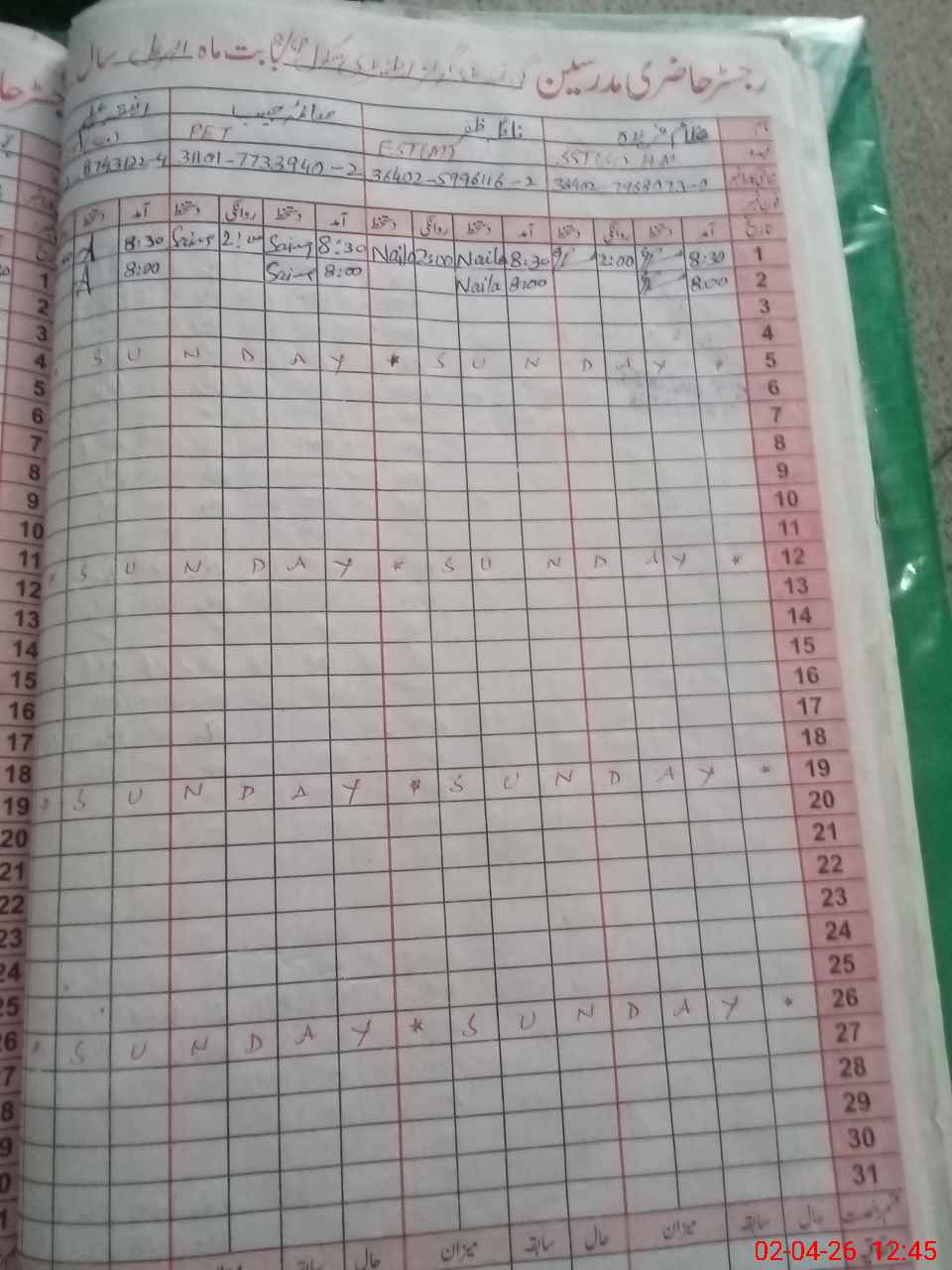 | Name: Gh**** Fa**** Designation: (School Headmaster's/Headmistress's) SST Science Phone/Cell Number: 03**** |