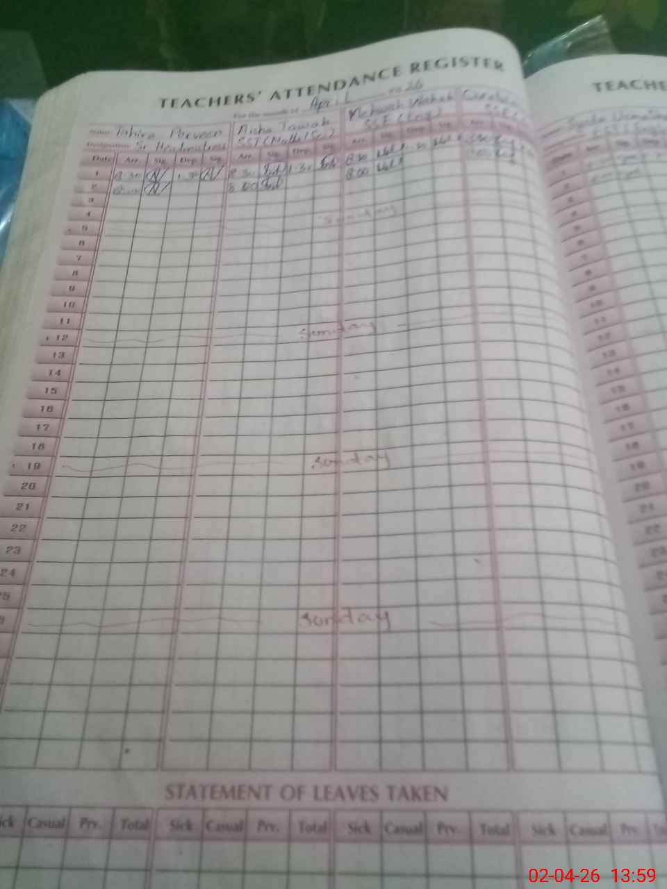 | Leave | Duty | Absent | Maternity | Medical | Ex- Pak |