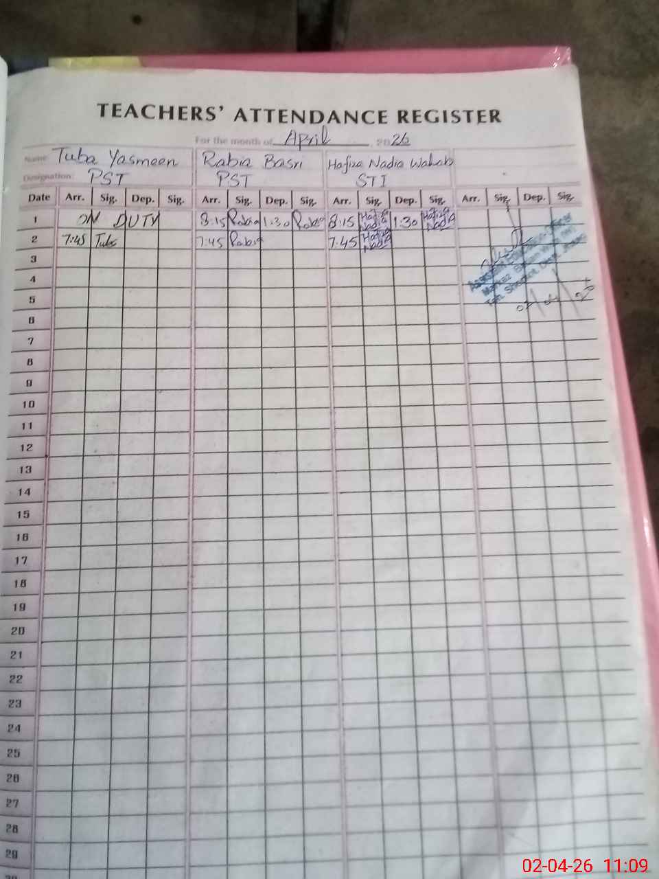 | Name: TU**** YA**** Designation: (School Headmaster's/Headmistress's) PST Phone/Cell Number: 03**** |