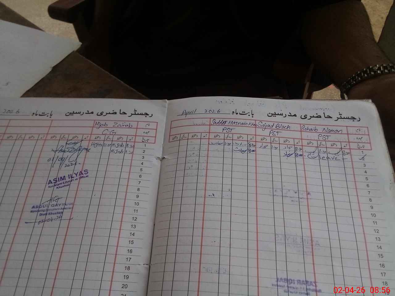 | District: KHUSHAB | Tehsil: KHUSHAB | Markaz: KHUSHAB (NORTH) (MALE) | Level: Primary | |