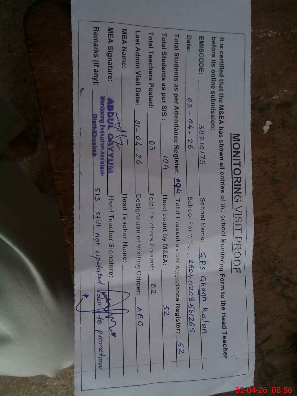 | EMIS Code: 38210175 | Name of School: GPS GHAGH KALAN | |||