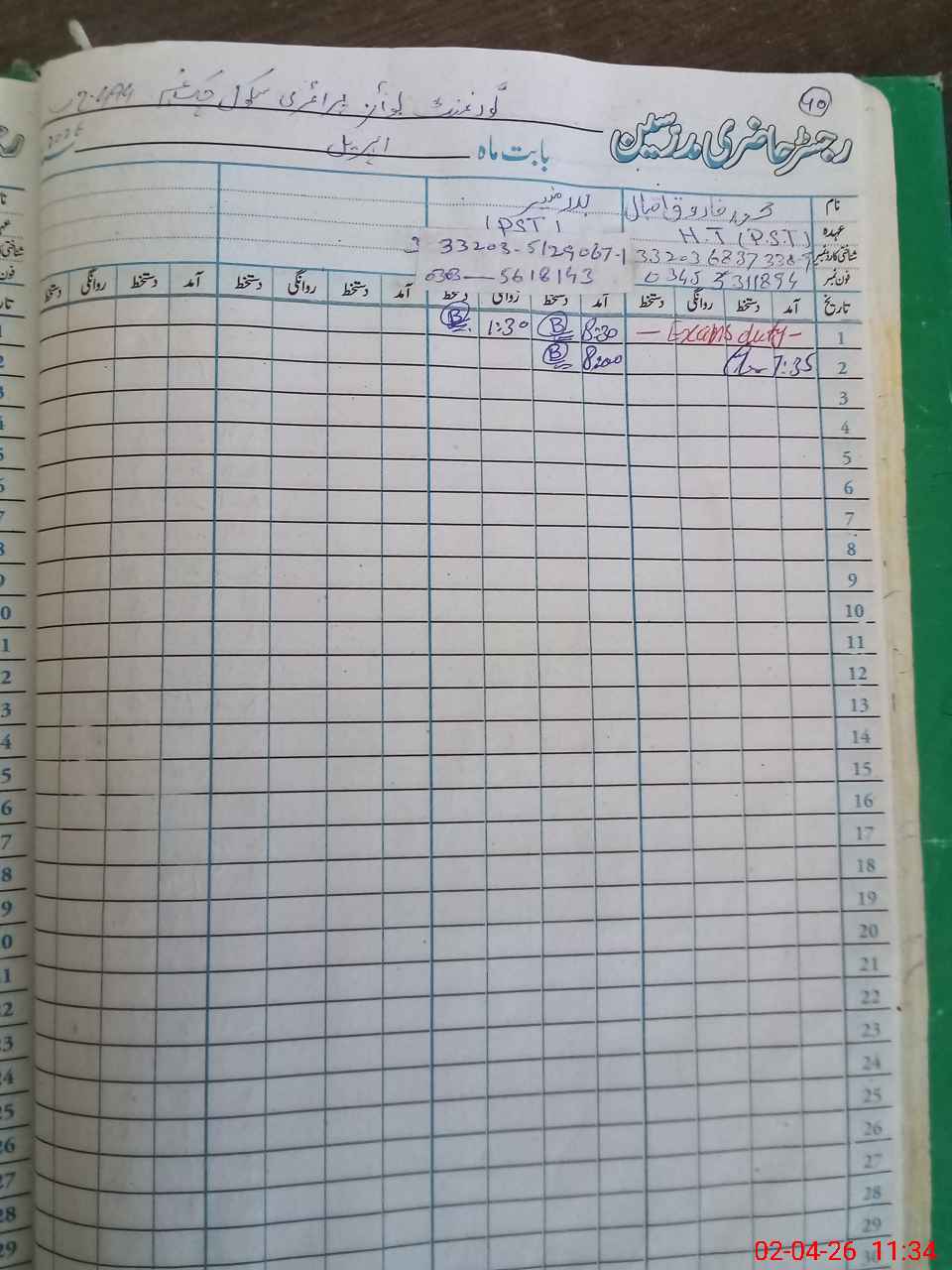 | Name: MU**** FA**** IQ**** Designation: (School Headmaster's/Headmistress's) PST Phone/Cell Number: 03**** |
