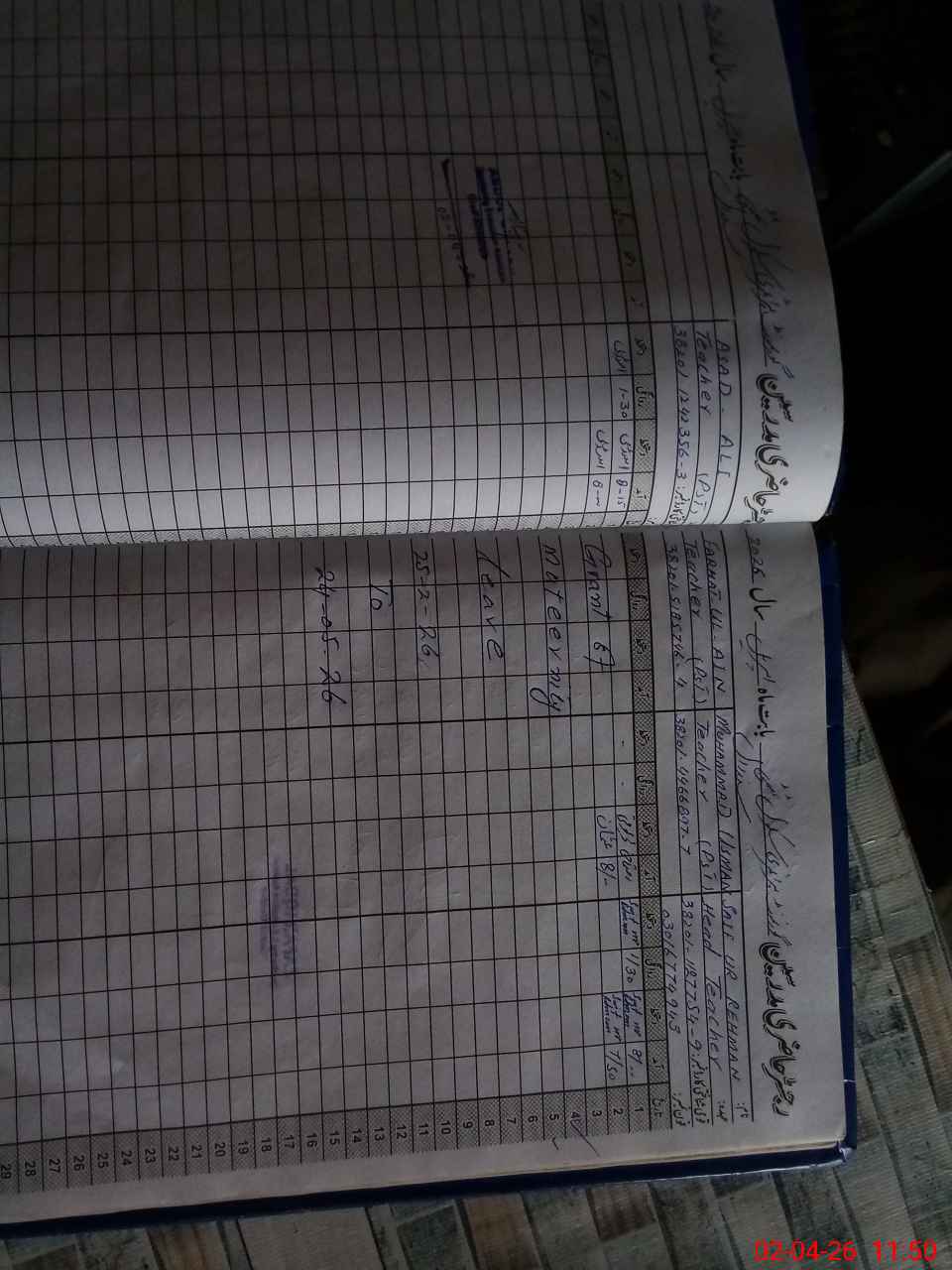 | Name: SA**** URRE**** Designation: (School Headmaster's/Headmistress's) PST Phone/Cell Number: 03**** |