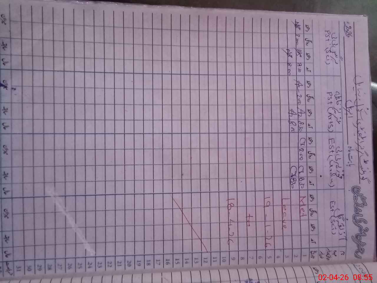 | 37**** | Na**** Ba**** | PST Science/Maths | Regular | 0 | 0 | 0 | 0 | 0 | 0 | 0 | 0 | 0 | Maternity |