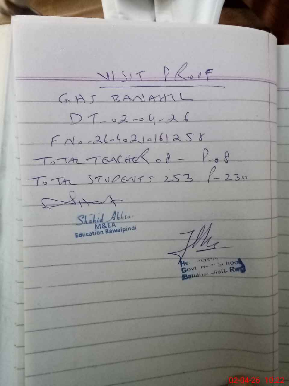 | EMIS Code: 37370019 | Name of School: GHS BANHAL | |||
