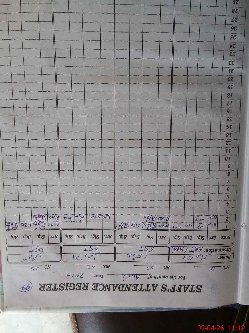 | CNIC | Full Name | Designation | R/C | Absence During Last Calender Month |