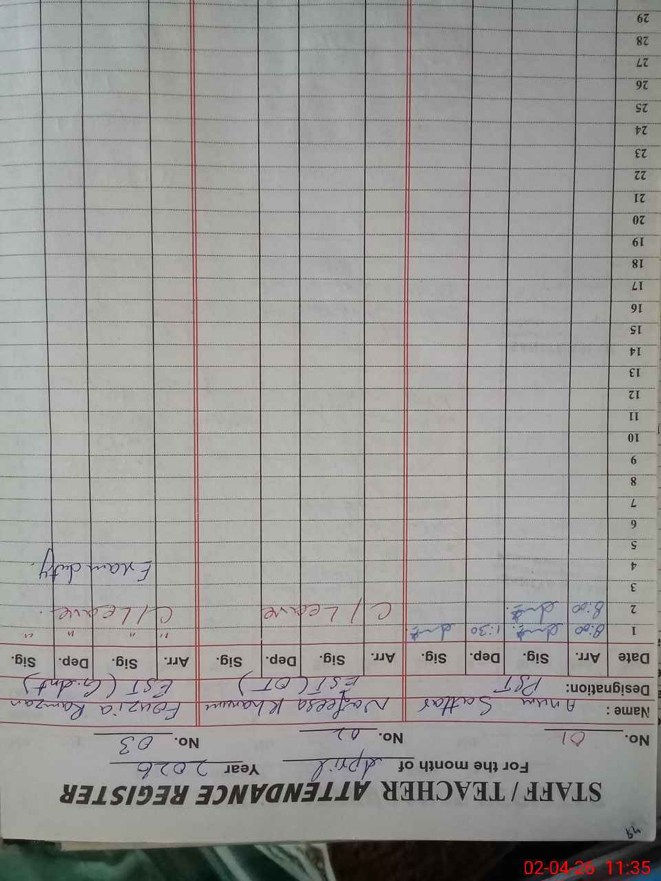 | 37**** | Fo**** Ra**** | EST General Arts | Regular | 0 | 0 | 0 | 0 | 0 | 0 | 0 | 0 | 0 | Exam Duty |