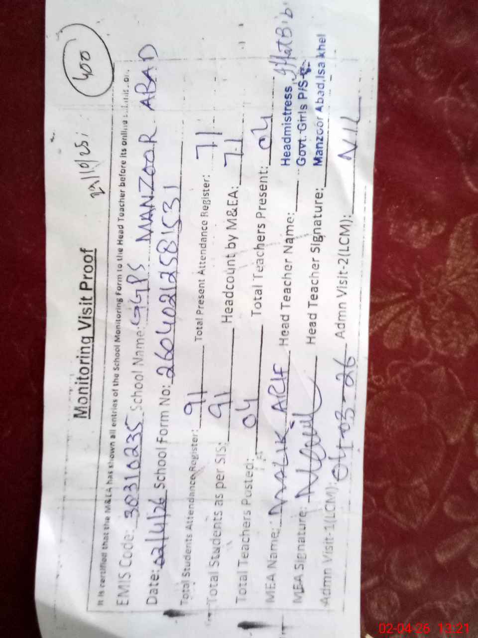 | EMIS Code: 38310235 | Name of School: GGPS MANZOOR ABAD ISA KHEL | |||