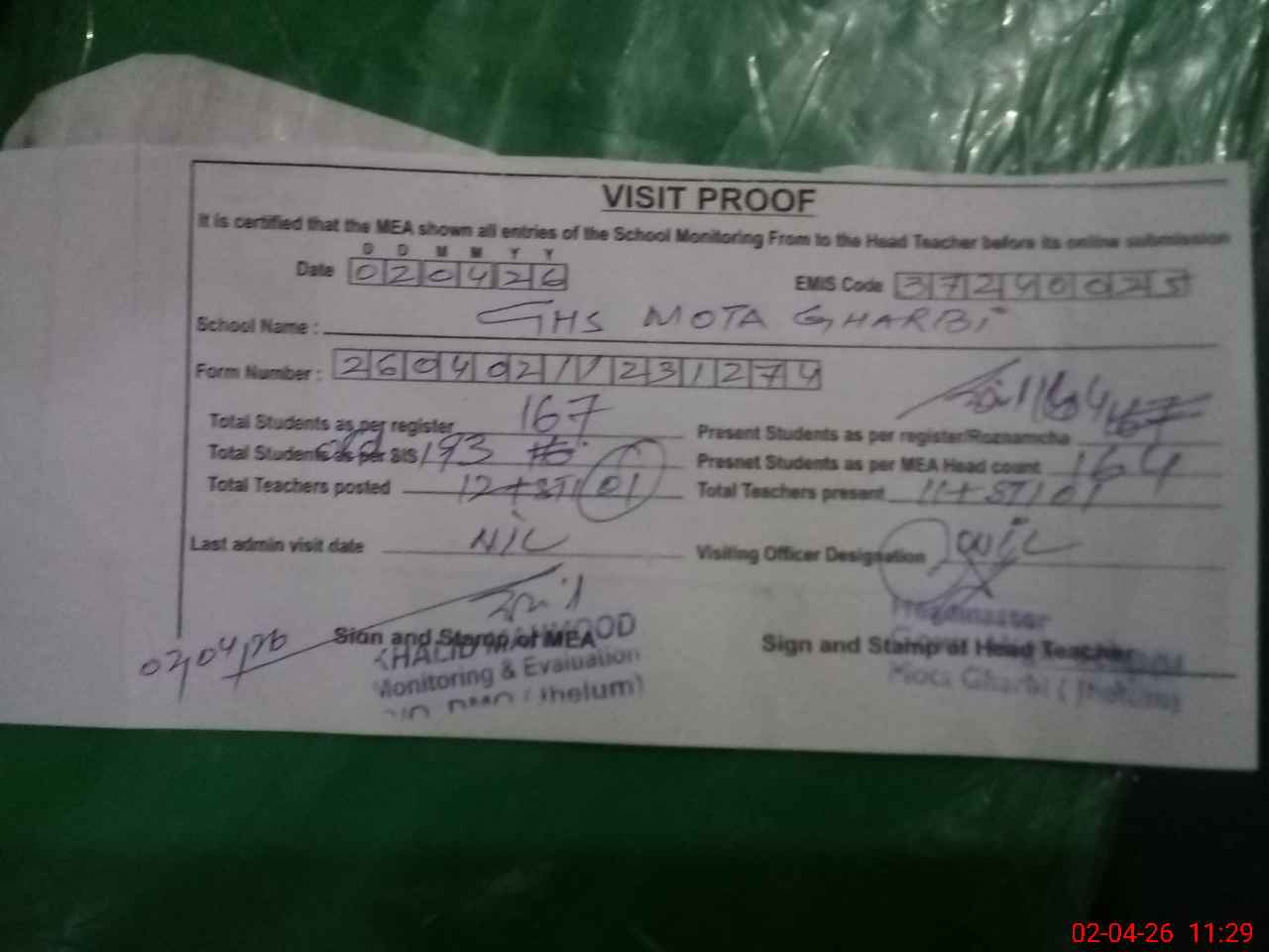 | EMIS Code: 37240025 | Name of School: GHS MOTA GHARBI | |||