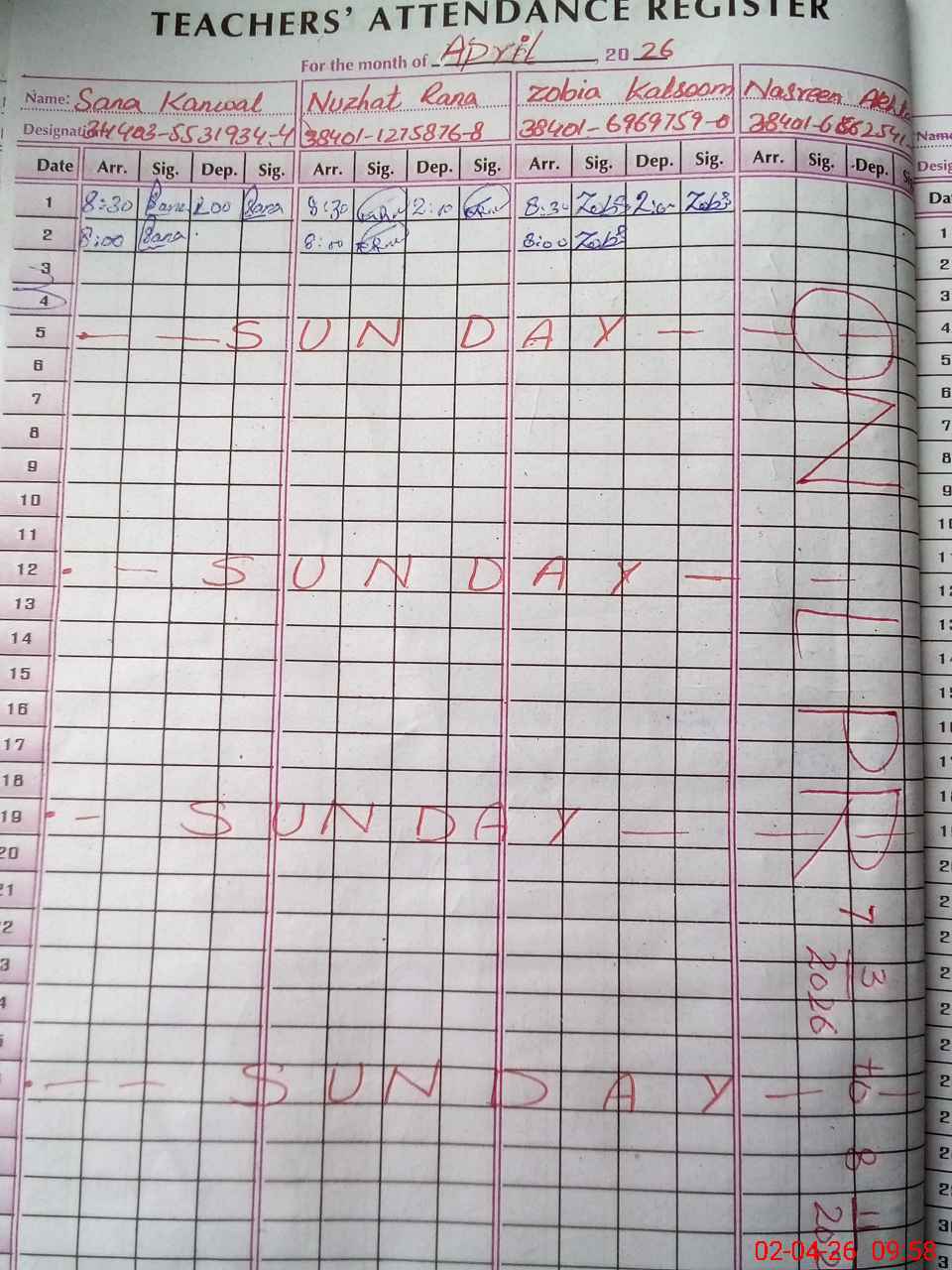 | CNIC | Full Name | Designation | R/C | Absence During Last Calender Month |