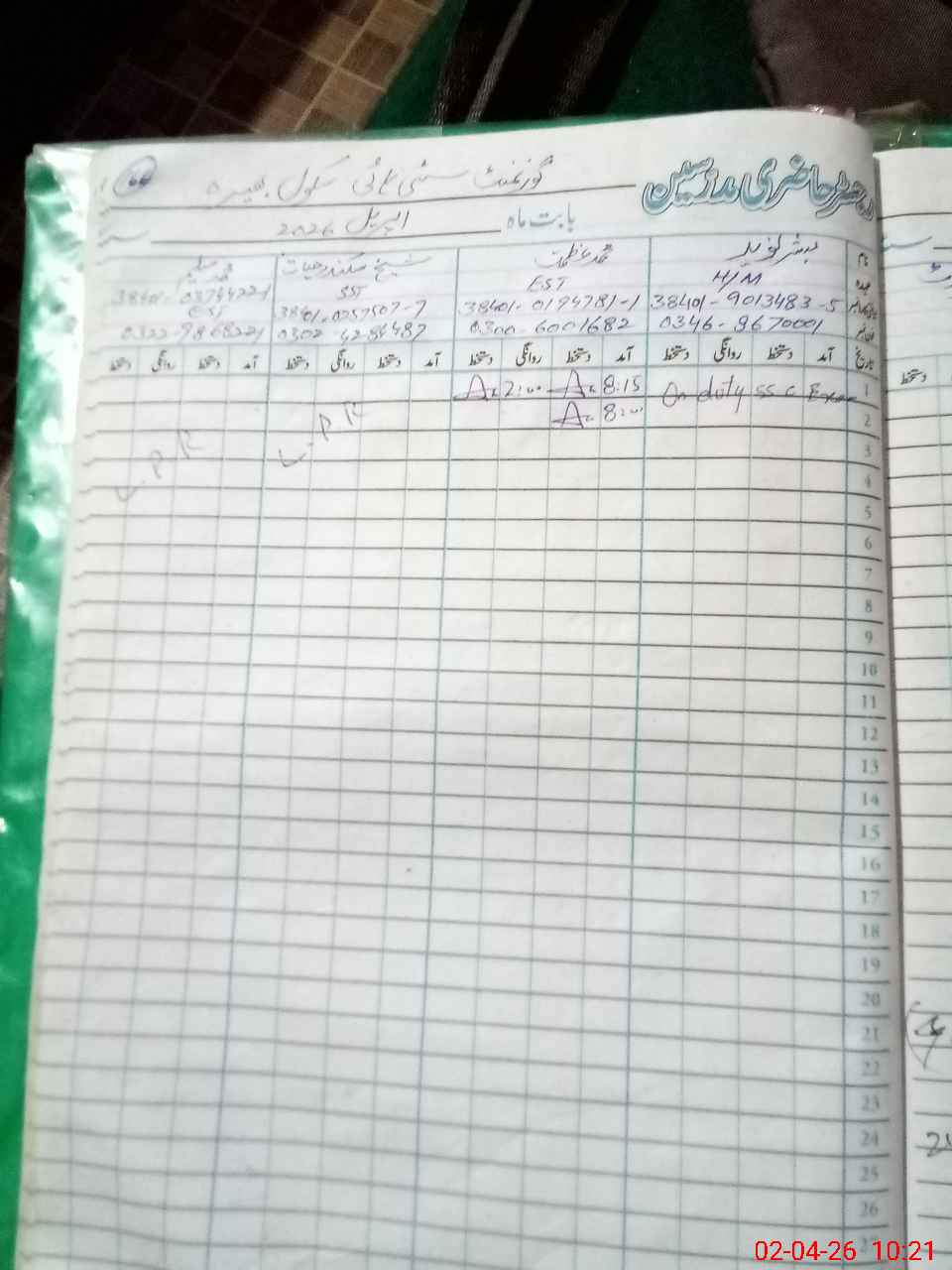 | 38**** | Mu**** Na**** | SST (Drawing) | Regular | 0 | 0 | 0 | 0 | 0 | 0 | 0 | 0 | 0 | Exam Duty |