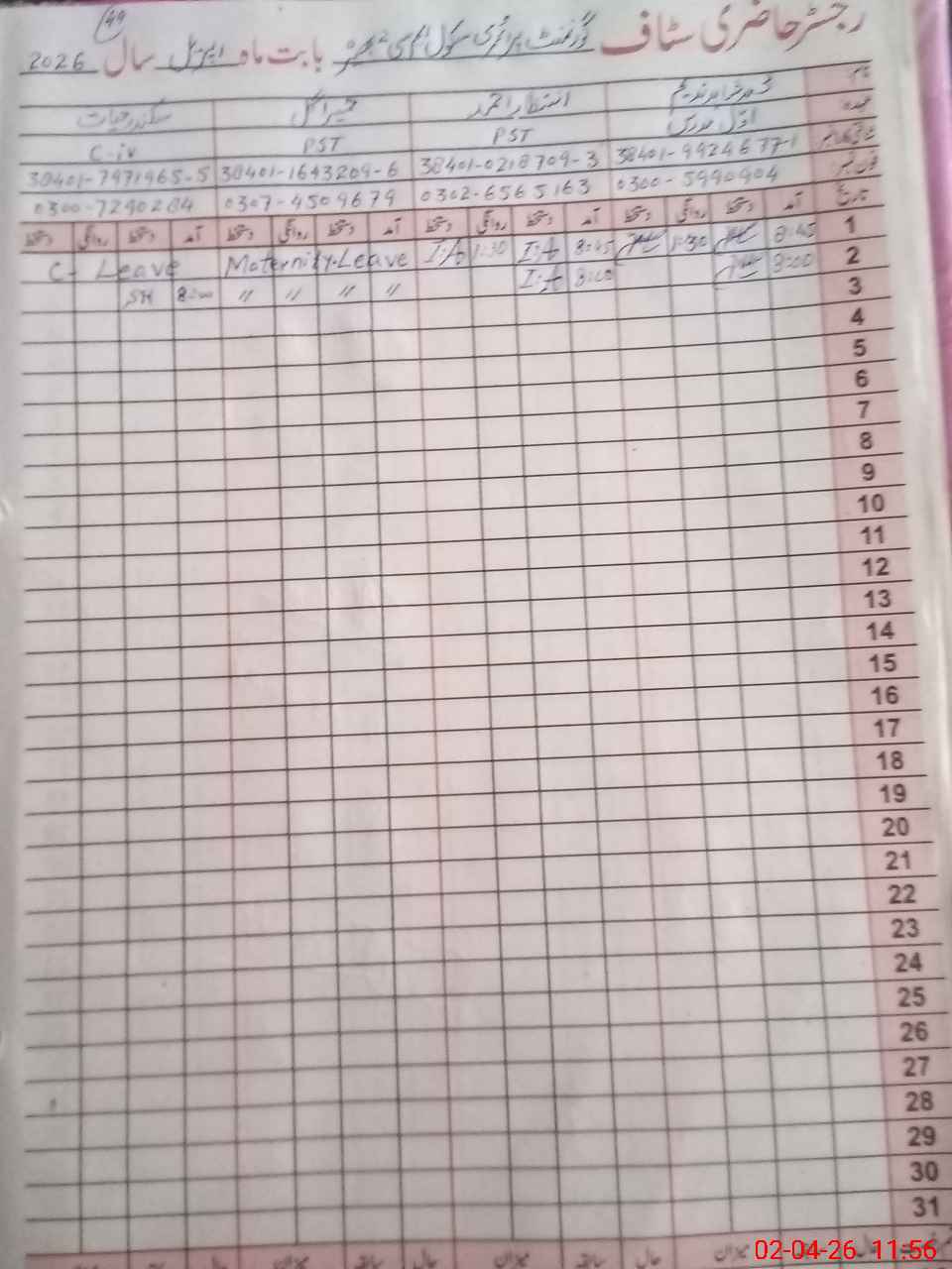 | Name: Mu**** Sh**** Designation: (School Headmaster's/Headmistress's) PST Phone/Cell Number: 03**** |