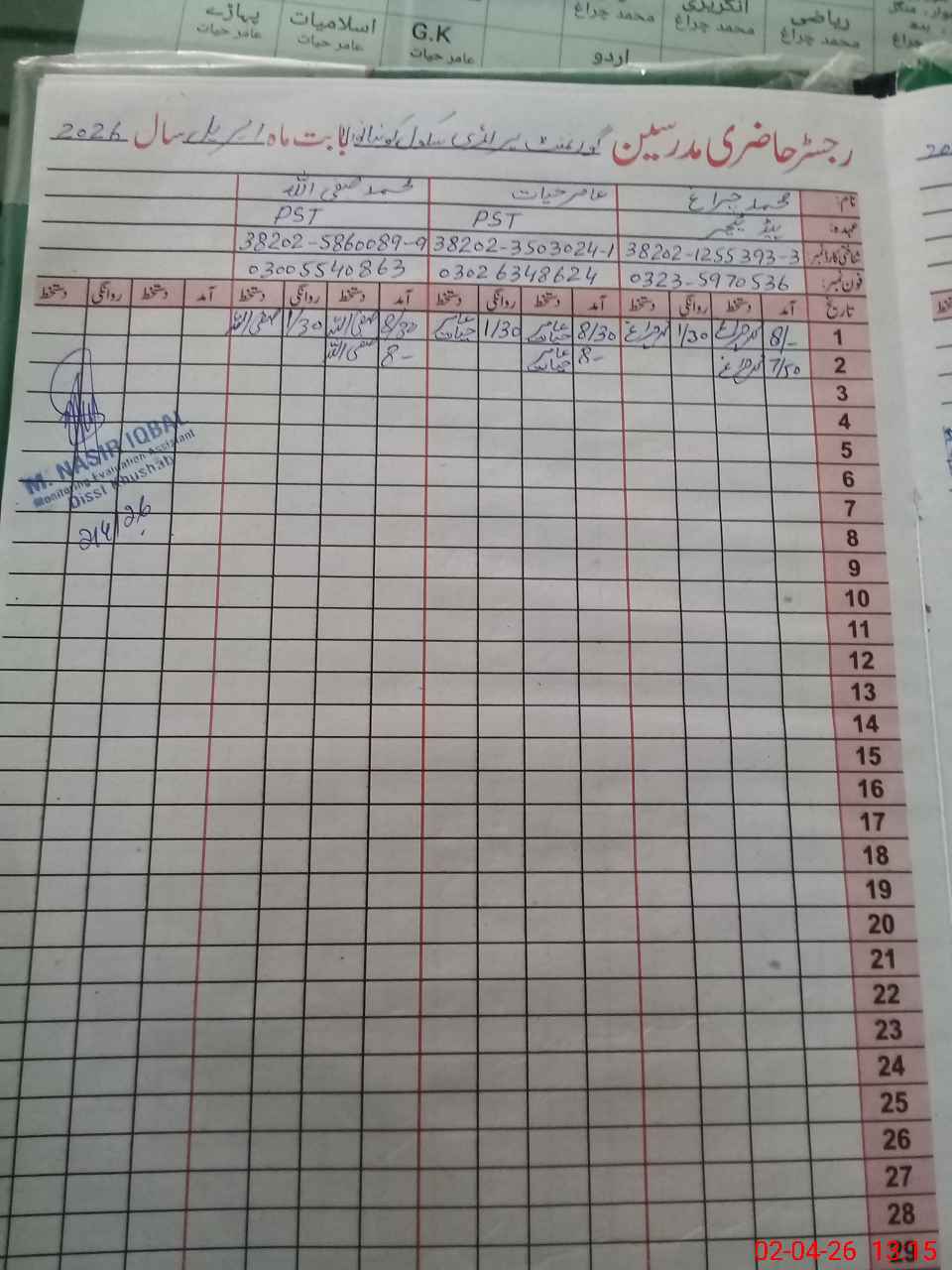 | Name: MU**** CH**** Designation: (School Headmaster's/Headmistress's) PST Phone/Cell Number: 03**** |
