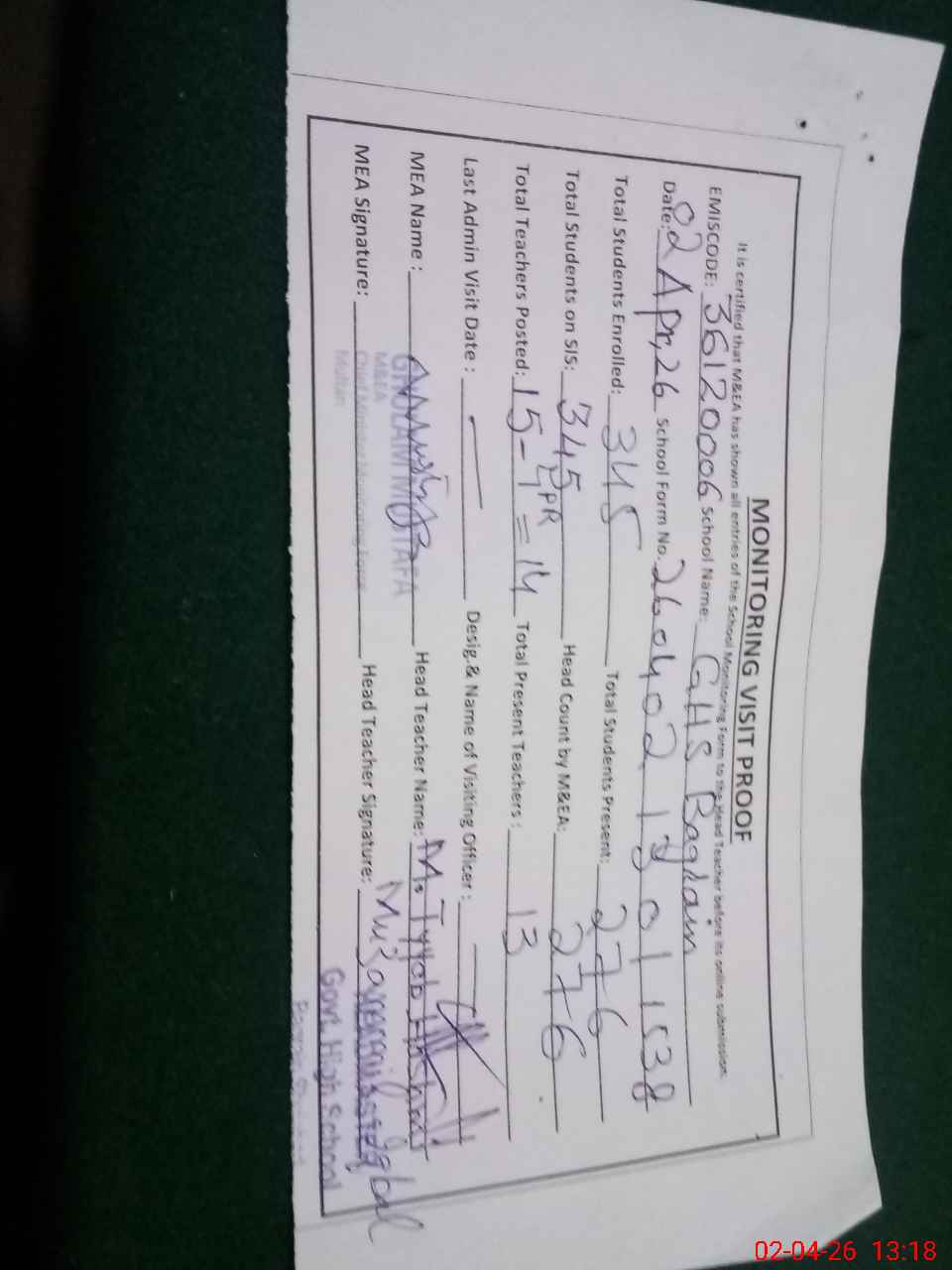 | EMIS Code: 36120006 | Name of School: GHS BAGRAIN V/P BAGRIAN TEH. SHUJABAD | |||
