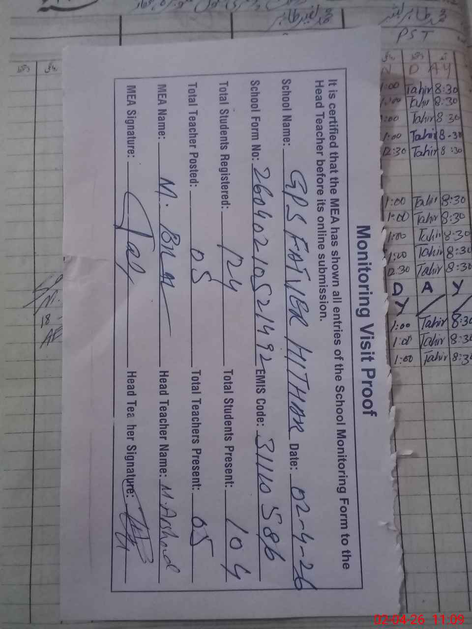 | EMIS Code: 31110586 | Name of School: GPS FATVERA HITHAR | |||