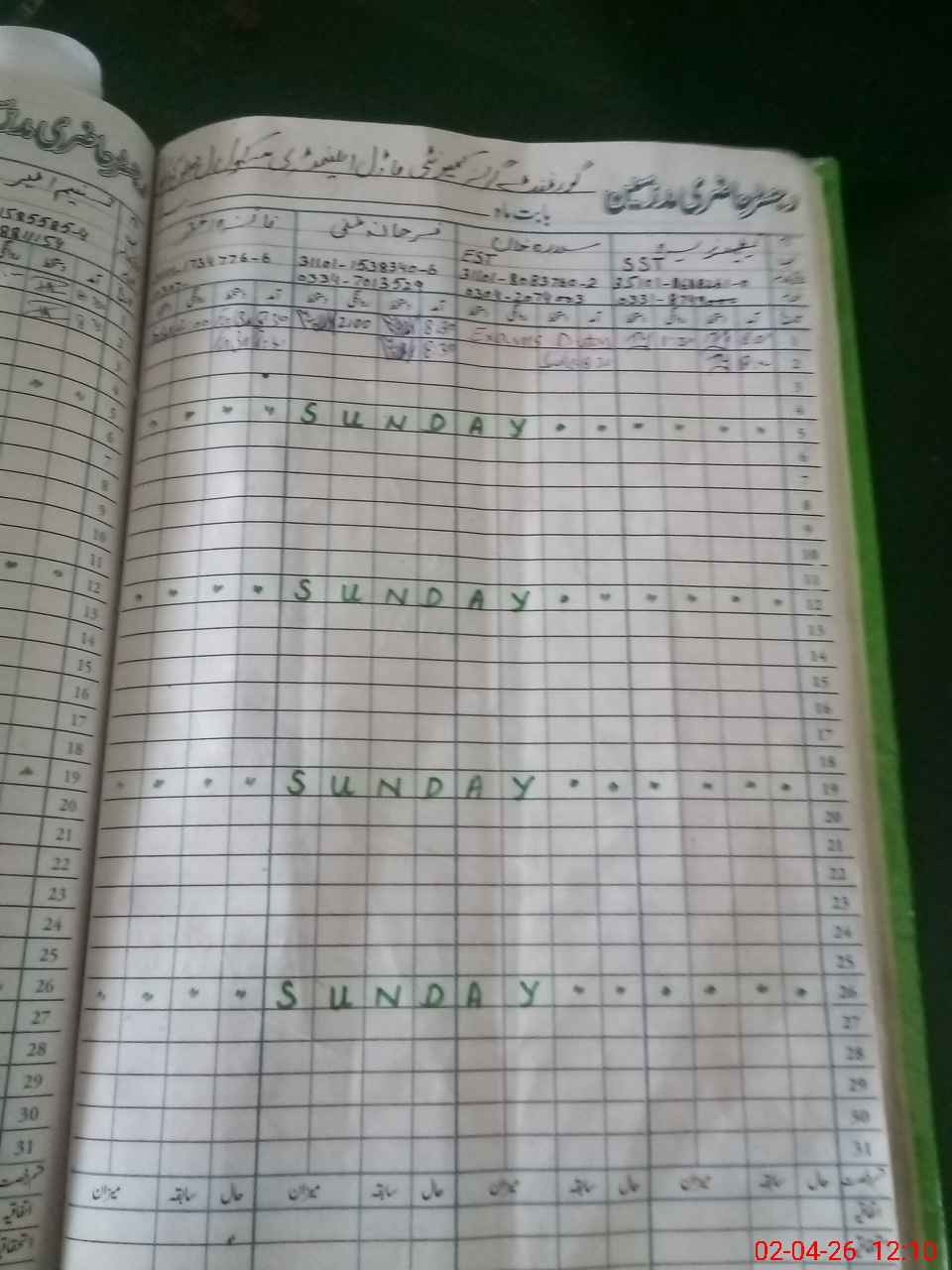 | CNIC | Full Name | Designation | R/C | Absence During Last Calender Month |