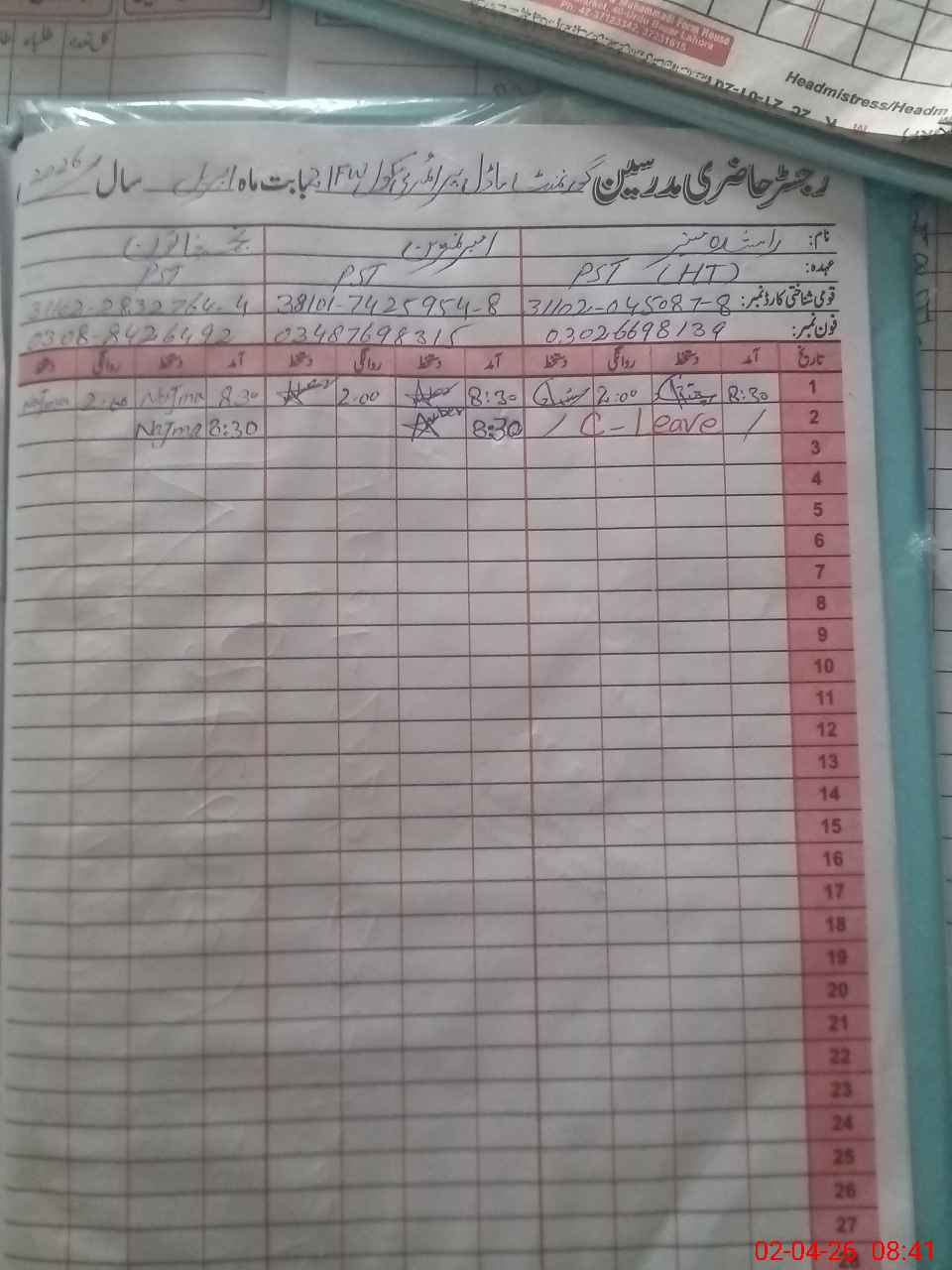 | Name: Ra**** Mu**** Designation: (School Headmaster's/Headmistress's) PST Phone/Cell Number: 03**** |