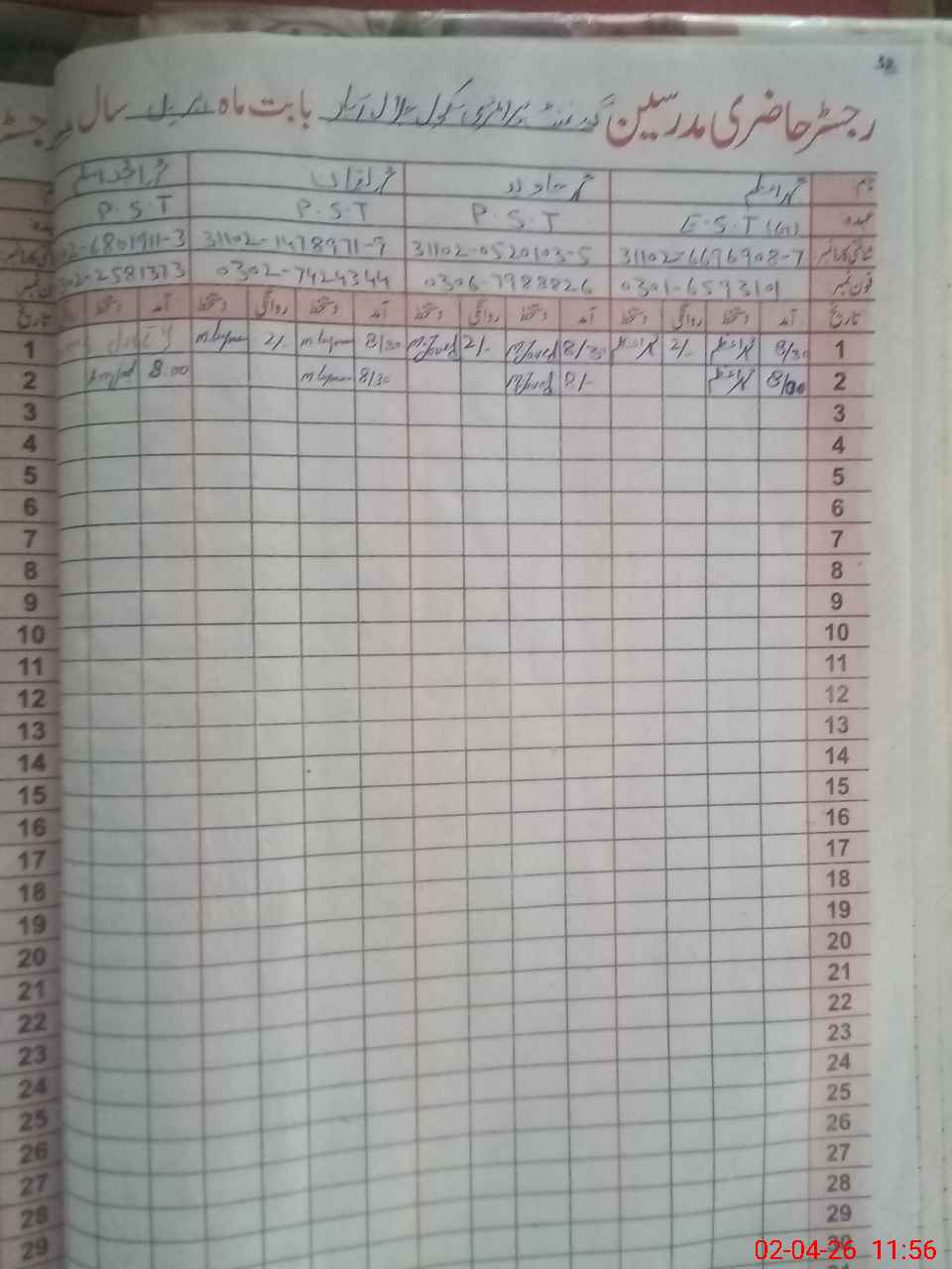 | Name: MU**** JA**** Designation: (School Headmaster's/Headmistress's) PST Phone/Cell Number: 03**** |