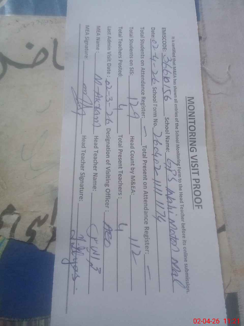 | EMIS Code: 36610156 | Name of School: GPS WAHI MOTON MAL | |||