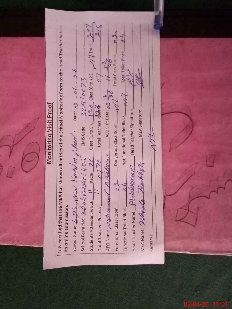 | EMIS Code: 32410073 | Name of School: GPS NEW KARIM ABAD | |||