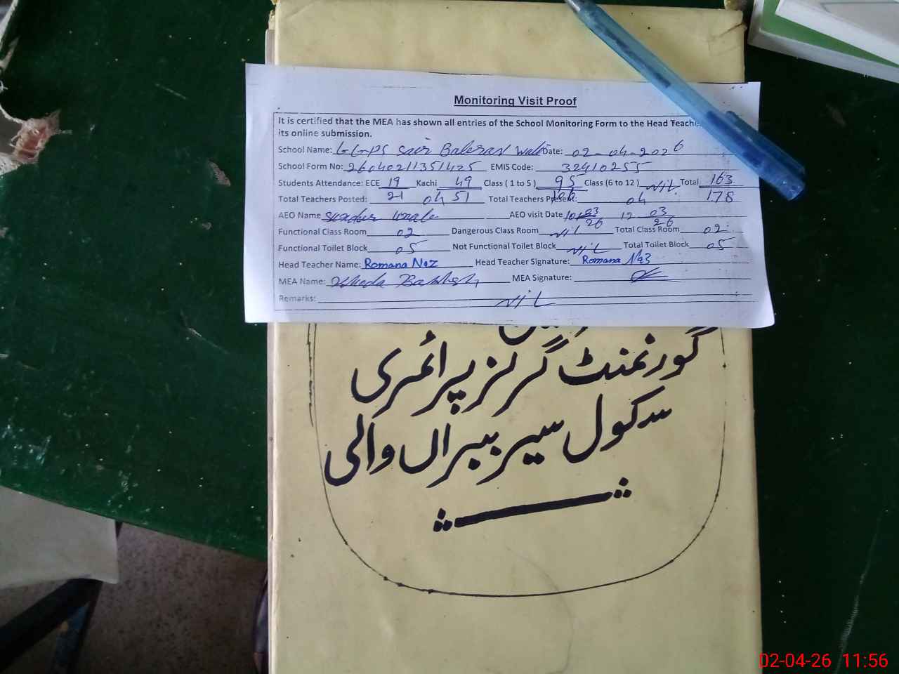 | EMIS Code: 32410255 | Name of School: GGPS SAIR BABRAN WALI | |||