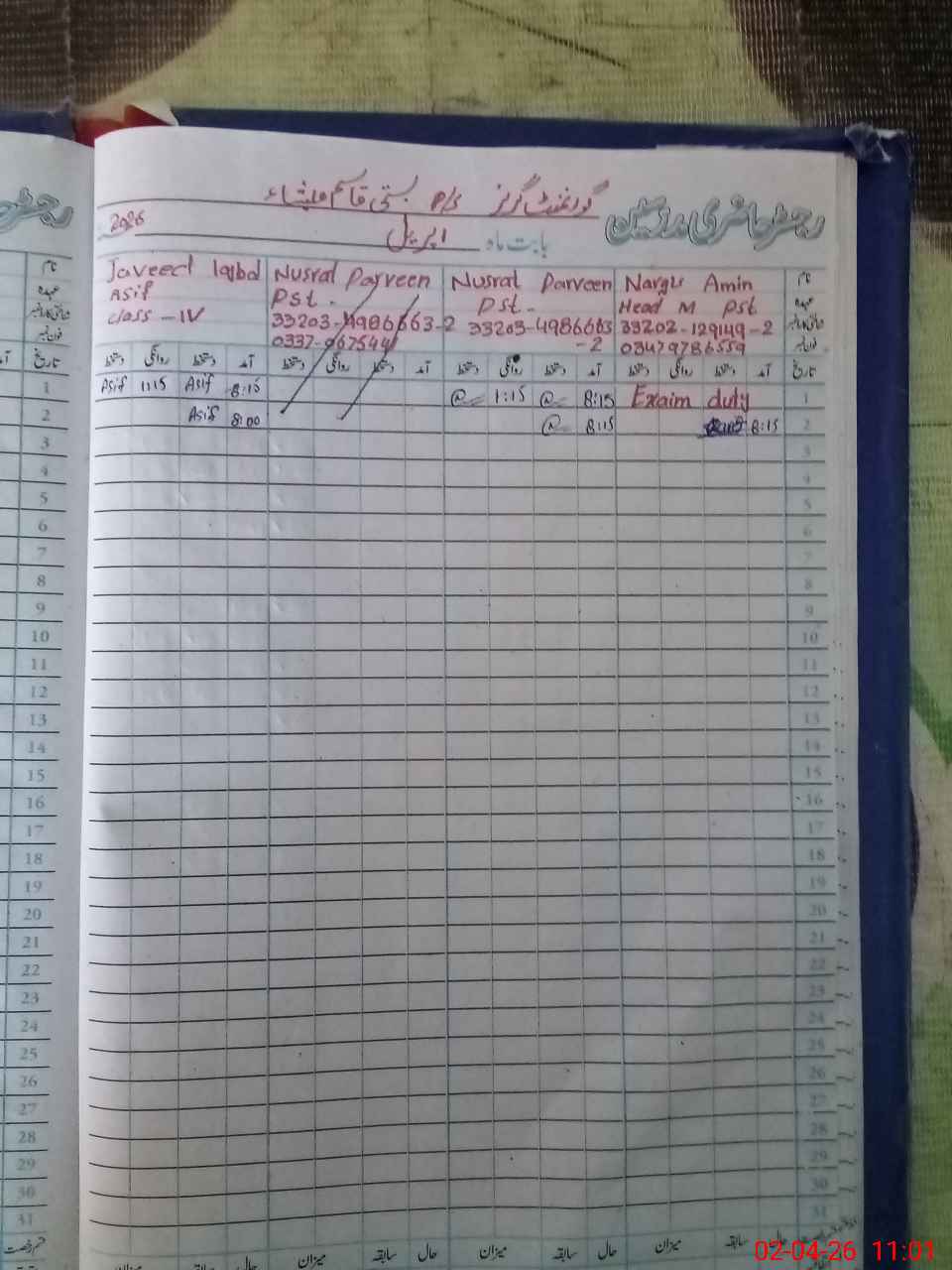 | Remarks (Use Separate Page if Required): Students mentioned in attendance list have been promoted to class 3 and 02 students are permanent absent | |||||