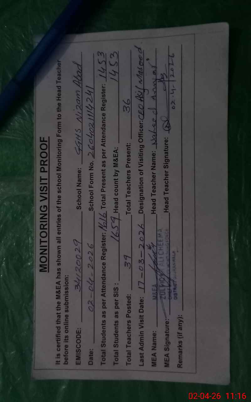 | EMIS Code: 34120029 | Name of School: GGHS NIZAM ABAD | |||