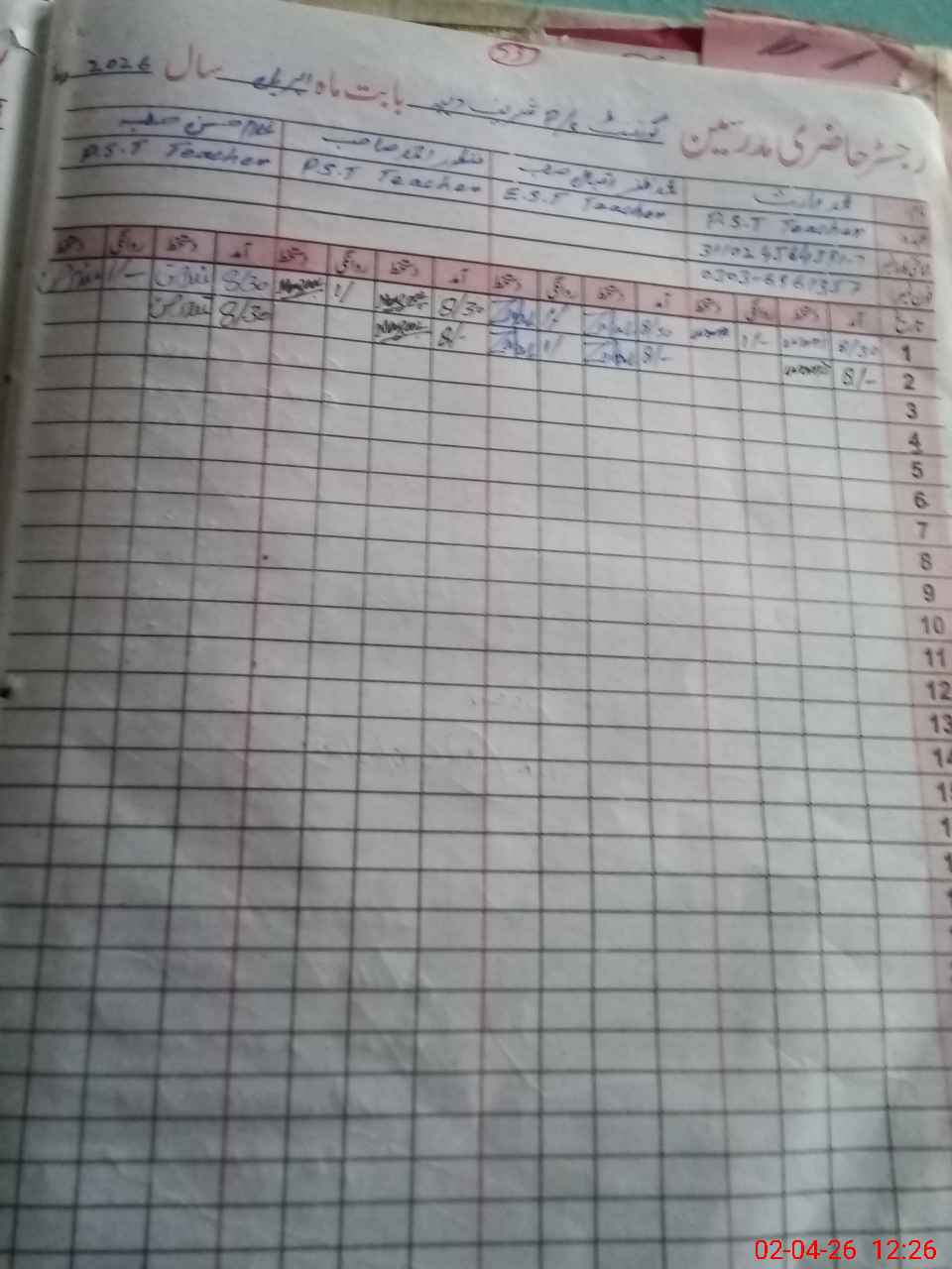 | Name: mu**** wa**** Designation: (School Headmaster's/Headmistress's) PST Phone/Cell Number: 03**** |