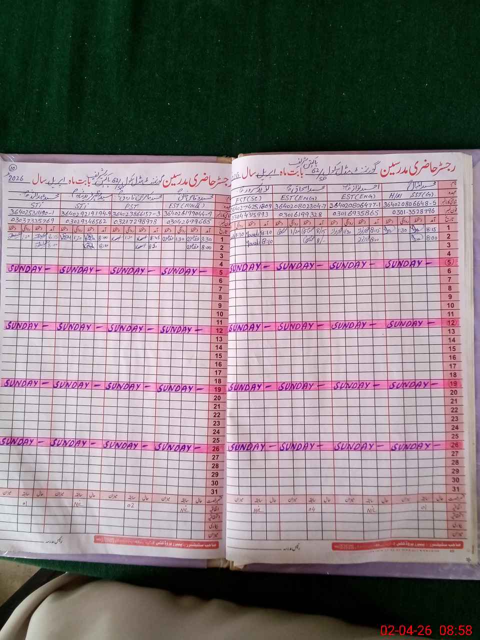 | 38**** | Wa**** Ah**** Kh**** | Temporary | 0 | 0 | 0 | 0 | 0 | 0 | 0 | 0 | 0 | Absent (Un-Authorized) | |