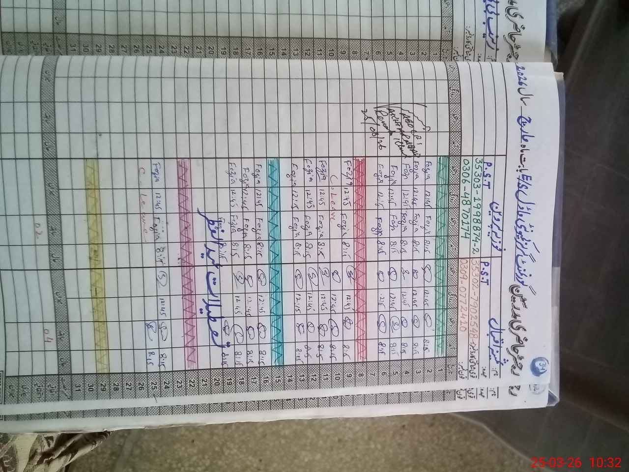 | CNIC | Full Name | Designation | R/C | Absence During Last Calender Month |