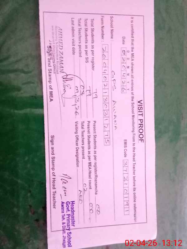 | Attendance Register | Head Teacher | MEA with School | Visit Proof |