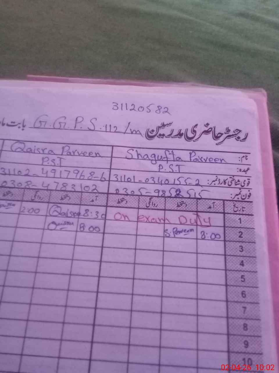 | Name: Sh**** Pe**** Designation: (School Headmaster's/Headmistress's) PST Phone/Cell Number: 03**** |