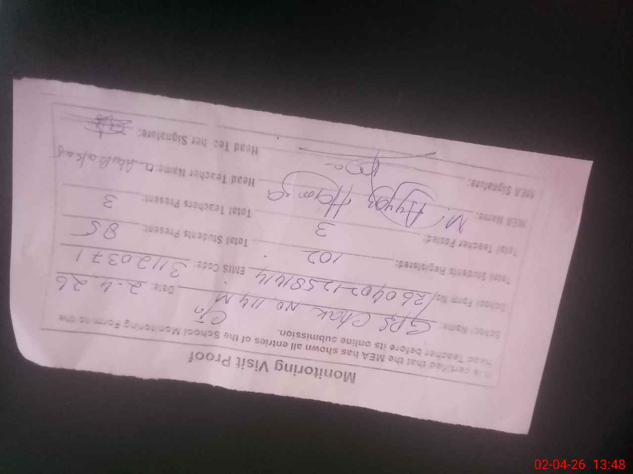| Monitoring Date: 02-04-2026 | Start Time: 02-04-2026 12:58 PM | End Time: 02-04-2026 01:48 PM | Name of MEA: M.**** HA**** BN**** | |