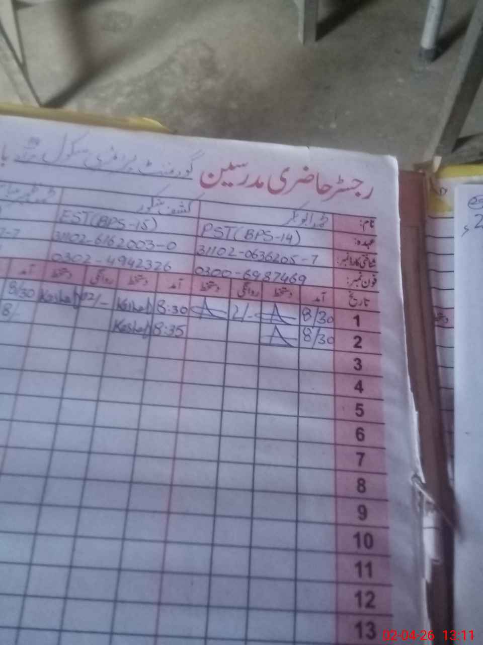 | Name: Mu**** Ab**** Designation: (School Headmaster's/Headmistress's) PST Phone/Cell Number: 03**** |