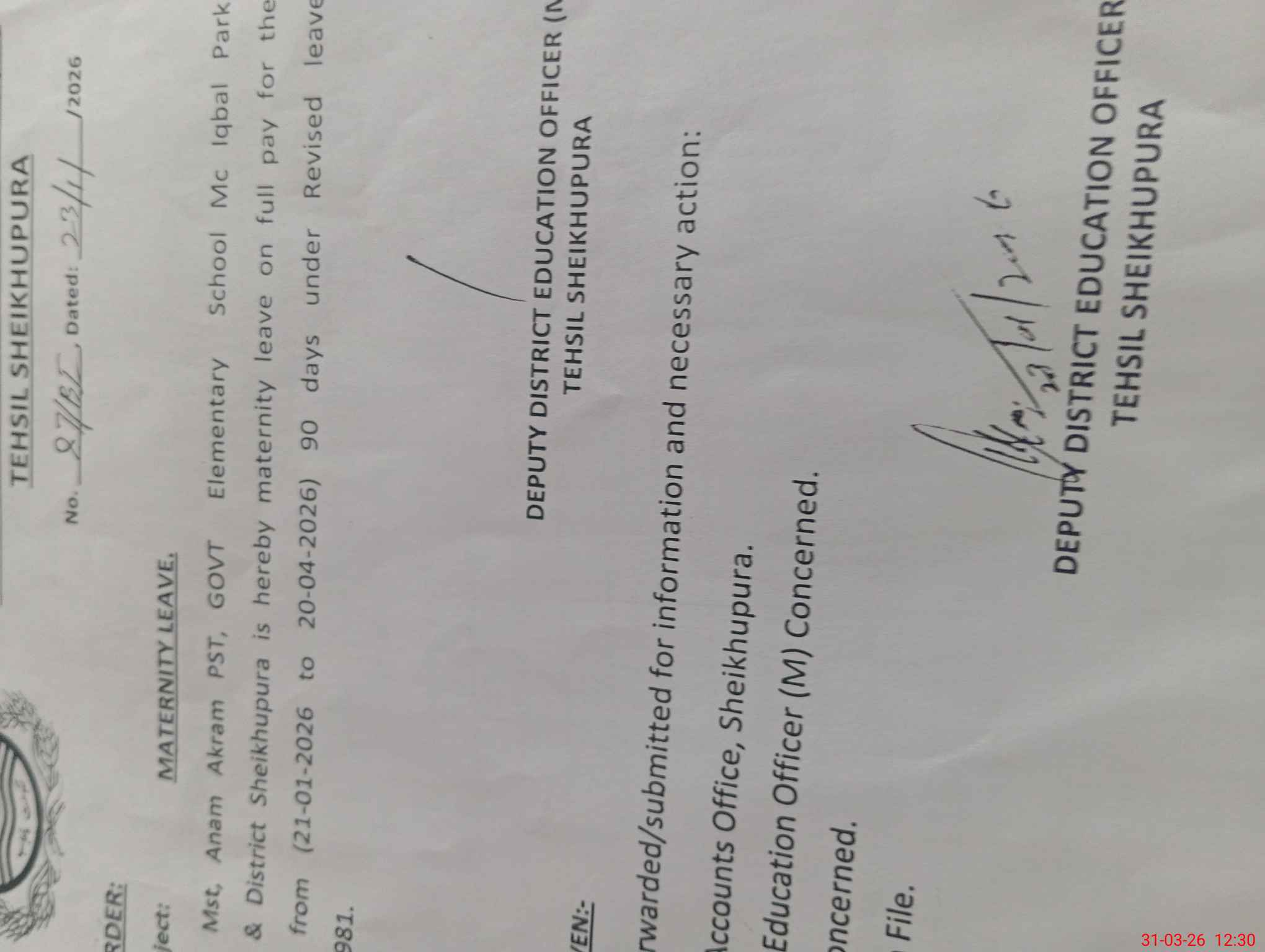 Signatures of DMO District: ------------- |