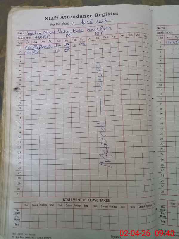 | Leave | Duty | Absent | Maternity | Medical | Ex- Pak |
