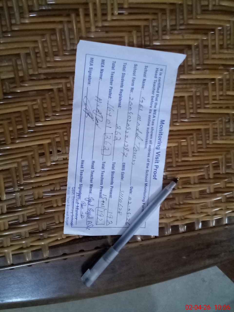 | Remarks (Use Separate Page if Required): the name of teacher Muhammad Rizwan is not in tab list and he is present and there is no approved leave of teacher Kiran Aslam on sis or hrm and free text books distribution record not Maintained | |||||