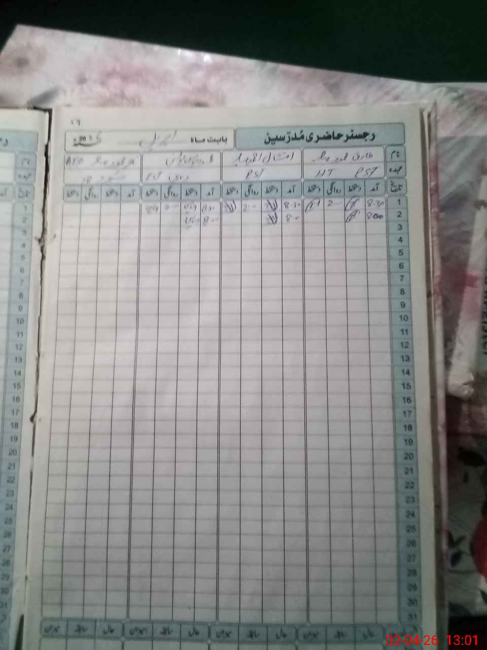 | CNIC | Full Name | Designation | R/C | Absence During Last Calender Month |