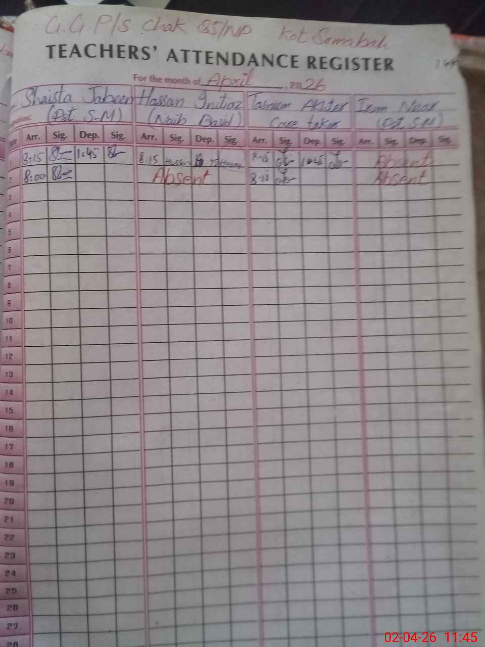 | 31**** | Ha**** Im**** | NAIB QASID | Regular | 1 | 0 | 2 | 0 | 0 | 0 | 0 | 0 | 1 | Absent (Un-Authorized) |