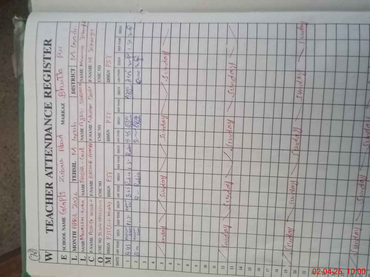 | Name: ME**** Kh**** Designation: (School Headmaster's/Headmistress's) PST Phone/Cell Number: 03**** |
