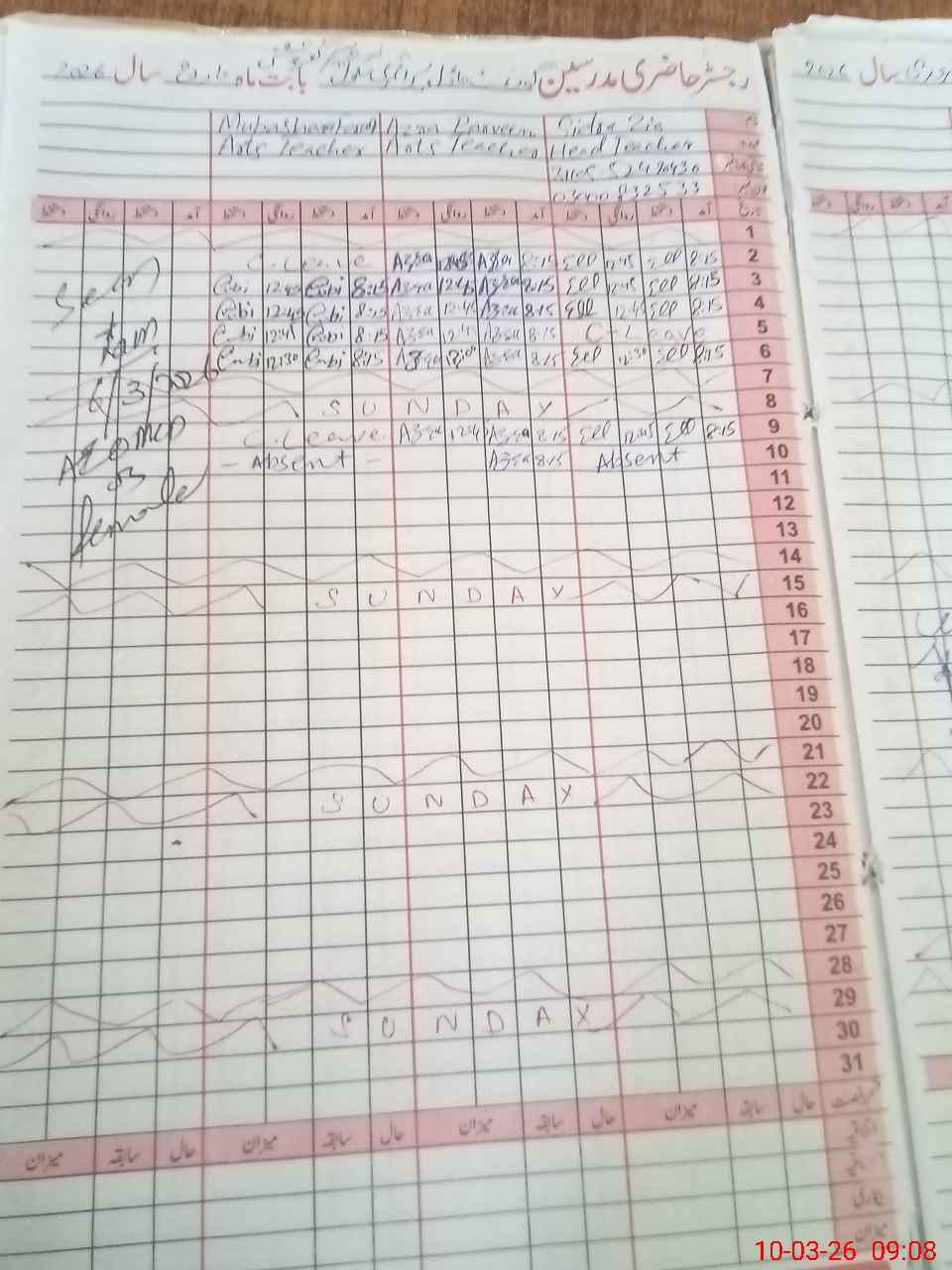 | 31**** | Mu**** Fa**** | ESE Science | Contract | 0 | 0 | 0 | 0 | 0 | 0 | 0 | 0 | 0 | Absent (Un-Authorized) |