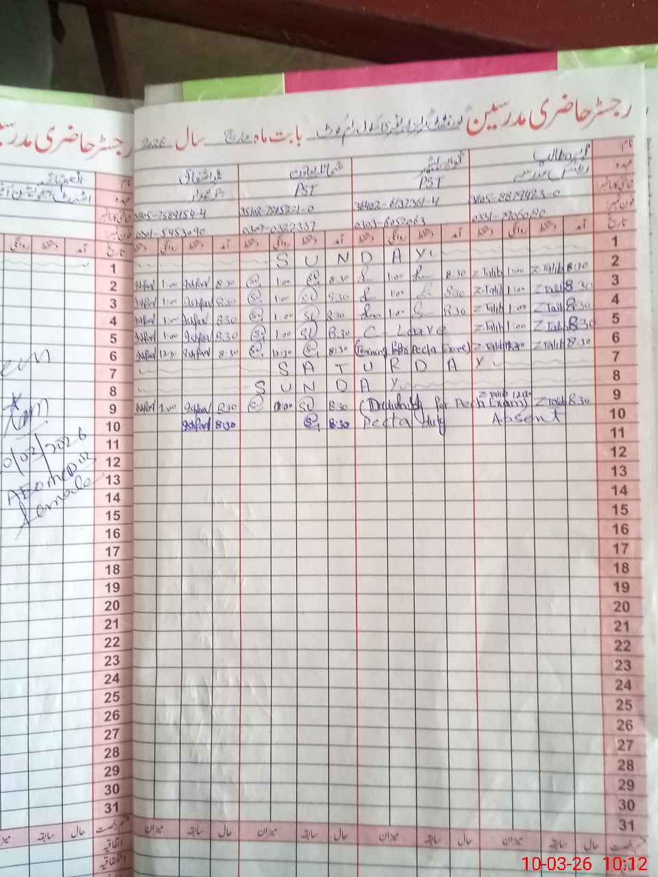 | 31**** | Za**** Ta**** | PST Science/Maths | Regular | 0 | 0 | 0 | 0 | 0 | 0 | 0 | 0 | 0 | Absent (Un-Authorized) |