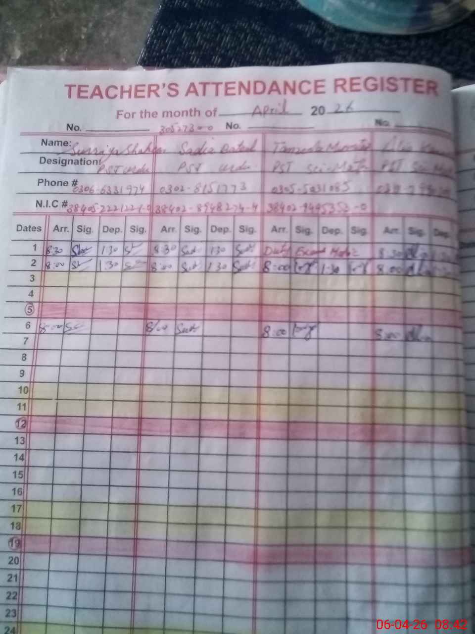 | Name: SU**** SH**** Designation: (School Headmaster's/Headmistress's) PST Phone/Cell Number: 03**** |