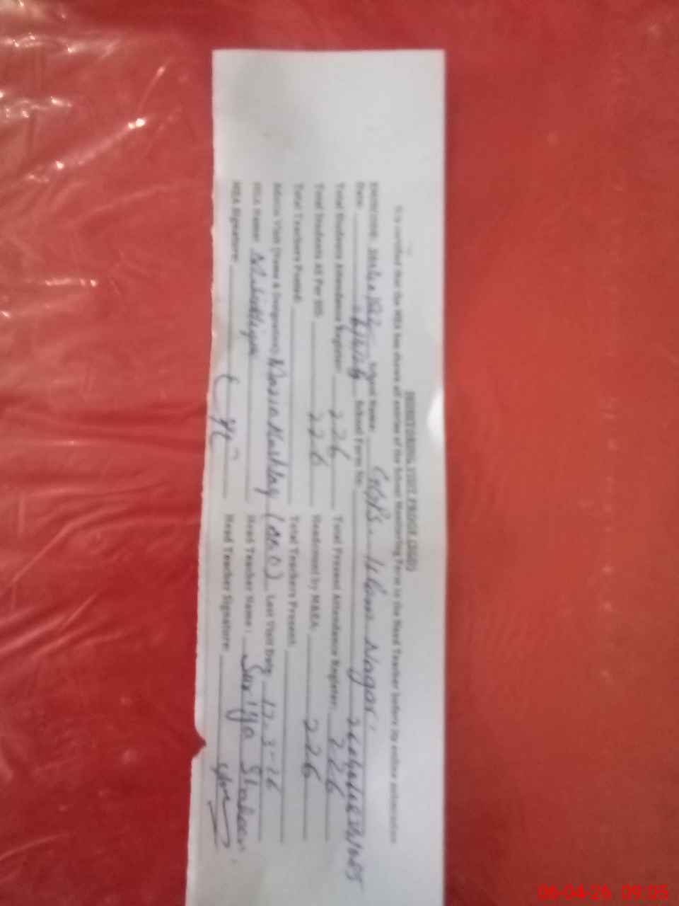 | Attendance Register | Head Teacher | MEA with School | Visit Proof |