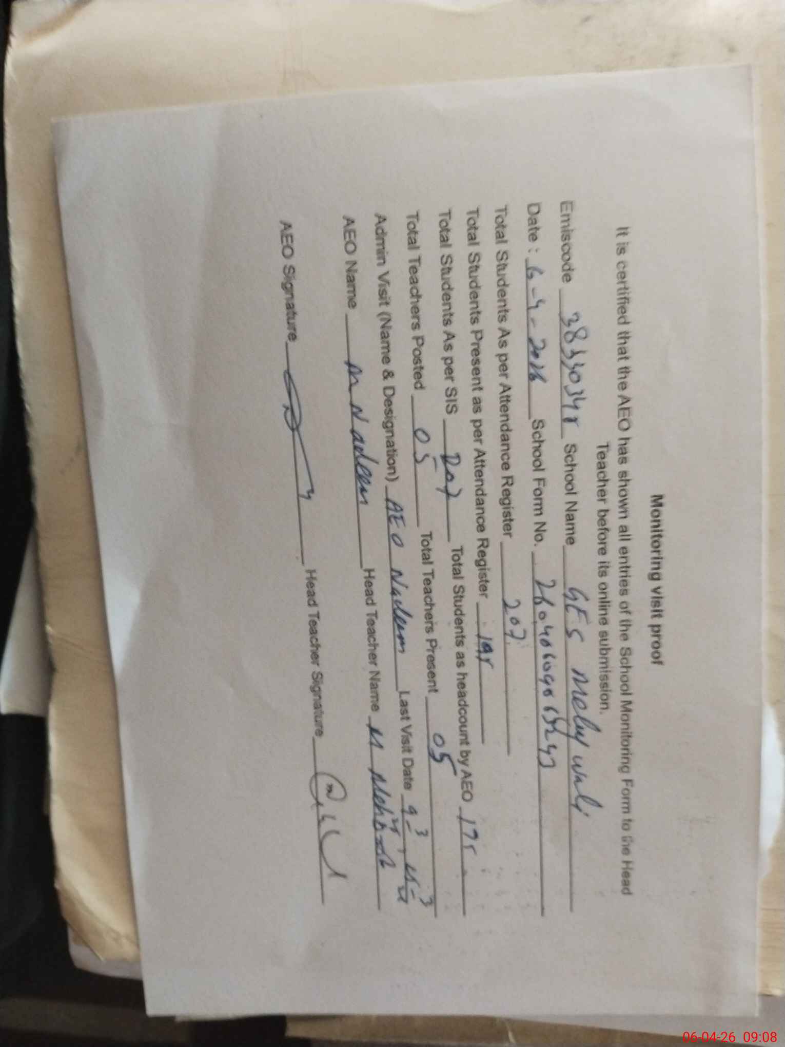 | EMIS Code: 38330345 | Name of School: GES MELE WALI KUNDIAN MIANWALI | |||