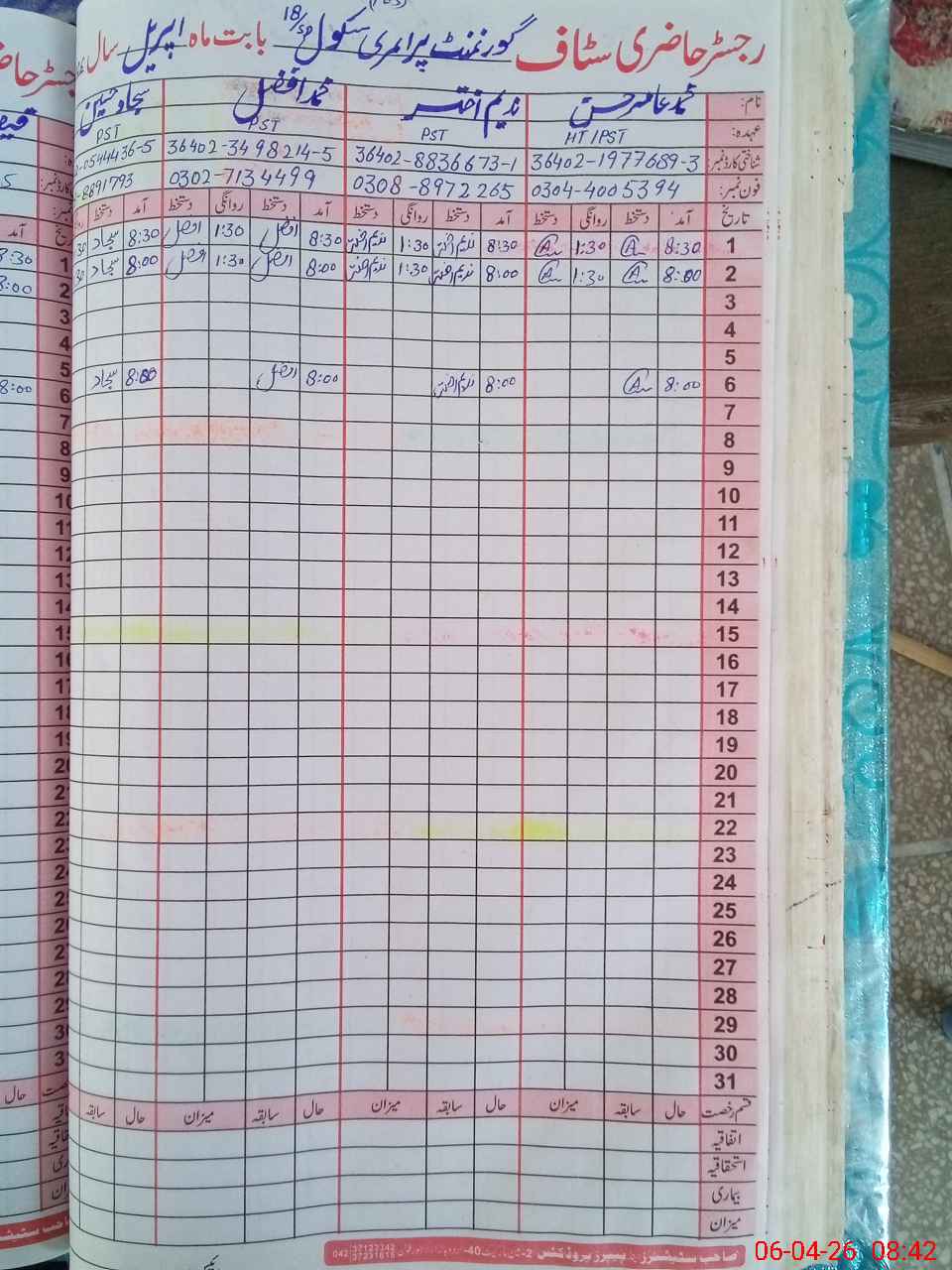 | Name: MAa**** Ha**** Designation: (School Headmaster's/Headmistress's) PST (Sci Math) Phone/Cell Number: 03**** |